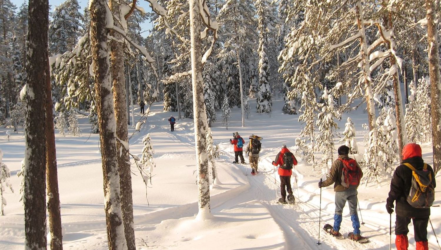 Lähde tutustumaan Hossan kansallispuiston upeisiin maisemiin lumikenkäillen! Tällä viikon mittaisella opastetulla vaelluksella liikumme vaihtelevassa maastossa Hossan metsissä, harjuilla, järvillä ja soilla. Viikon aikana ajoitumme eräkämpissä, joista osassa ei ole nykyajan mukavuuksia, mutta lämpöä ja hyvää tunnelmaa riittää jokaisessa paikassa. Päivittäin lumikenkäilemme noin 6 tuntia vaihtelevassa maastossa, missä on lukuisia lyhyitä ylä- ja alamäkiä. Aikaisempaa lumikenkäilykokemusta ei tarvita, mutta kohtuullinen fyysinen kunto on välttämätön. Tammi-maaliskuun takuulähdöt soveltuvat hyvin myös yksin matkustaville.