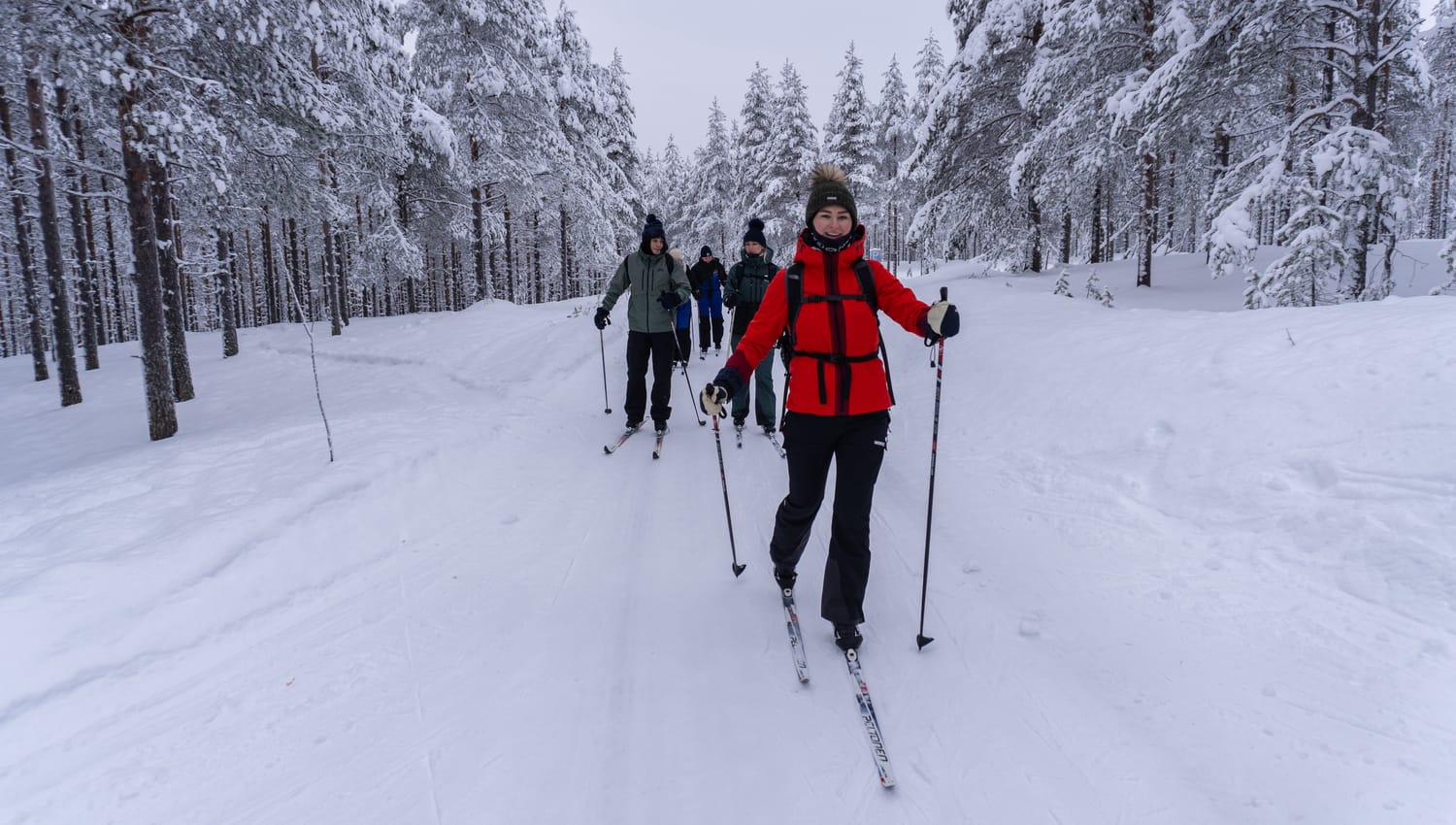 Today, we’ll learn cross-country skiing - an essential Finnish tradition and a mode of transport for centuries. It may take some practice, but once you get the hang of it, you’ll love gliding through the snow. After technical instruction, you’ll have the chance to follow easy tracks through the flat pine forest and across frozen lakes.